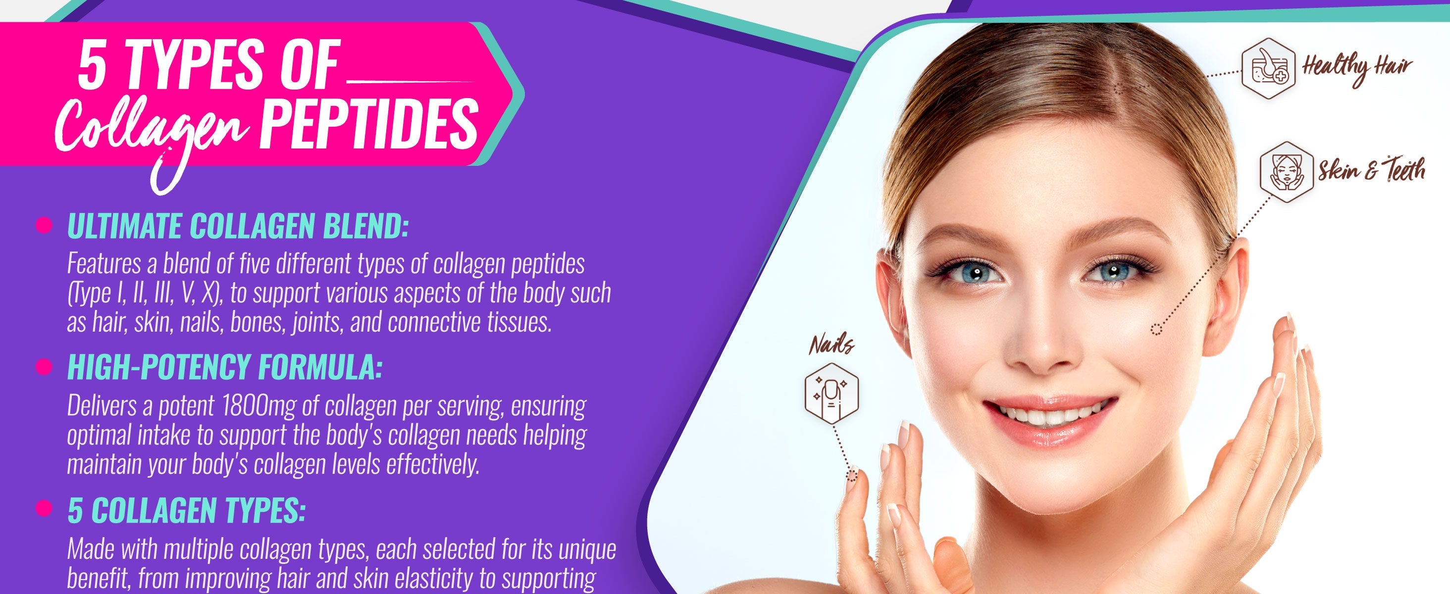 Contains 5 types of collagen (Type I, II, III, etc.) for full-body support.